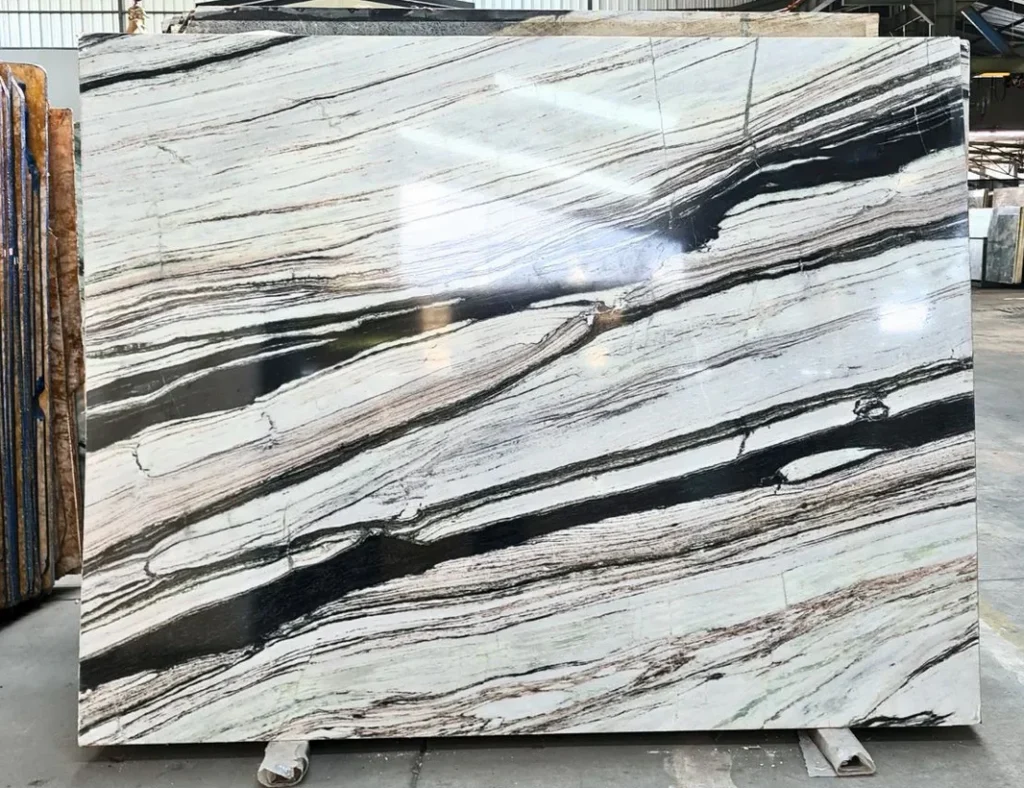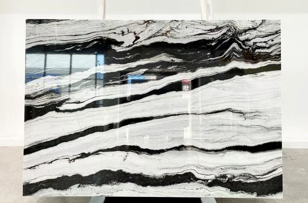 Panda White marble, originating from quarries primarily in China, is a stunning and exotic natural stone known for its striking black and white contrast. It features a white background with bold black veining, resembling the distinct markings of a panda bear. The polished finish accentuates its sleek texture and dramatic patterns, adding a touch of sophistication to any space. Ideal for countertops, flooring, and wall cladding, Panda White marble creates a bold statement in modern interior designs.