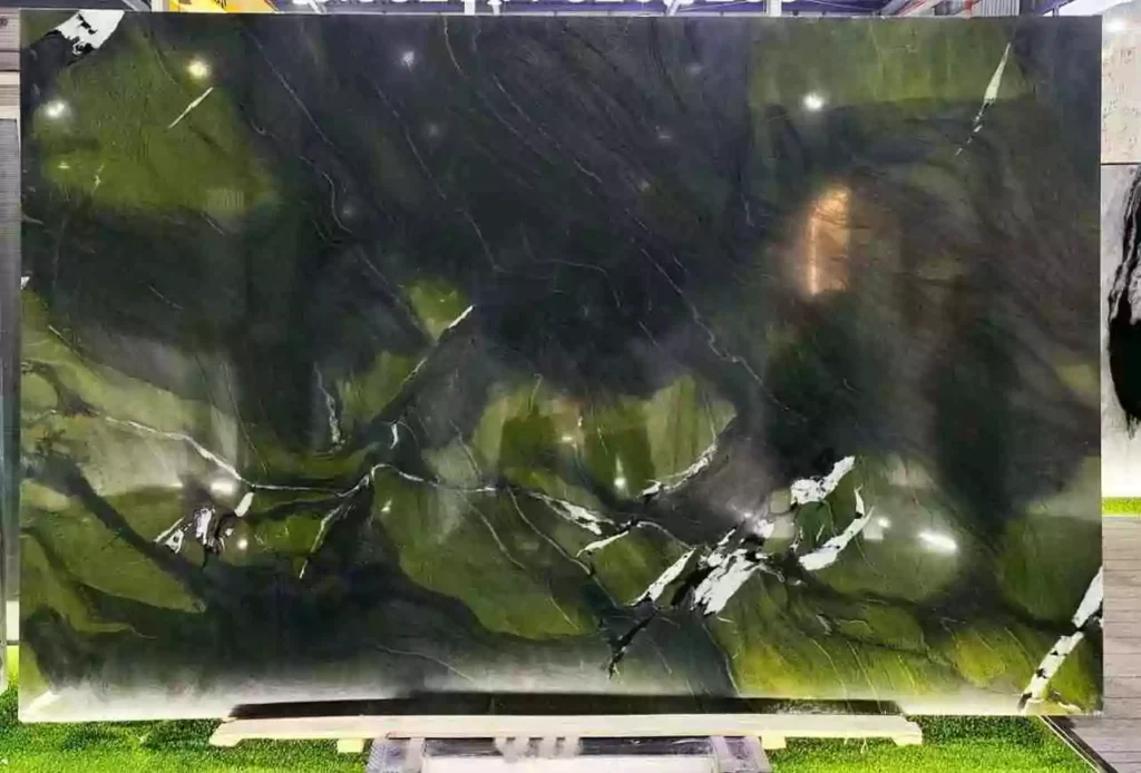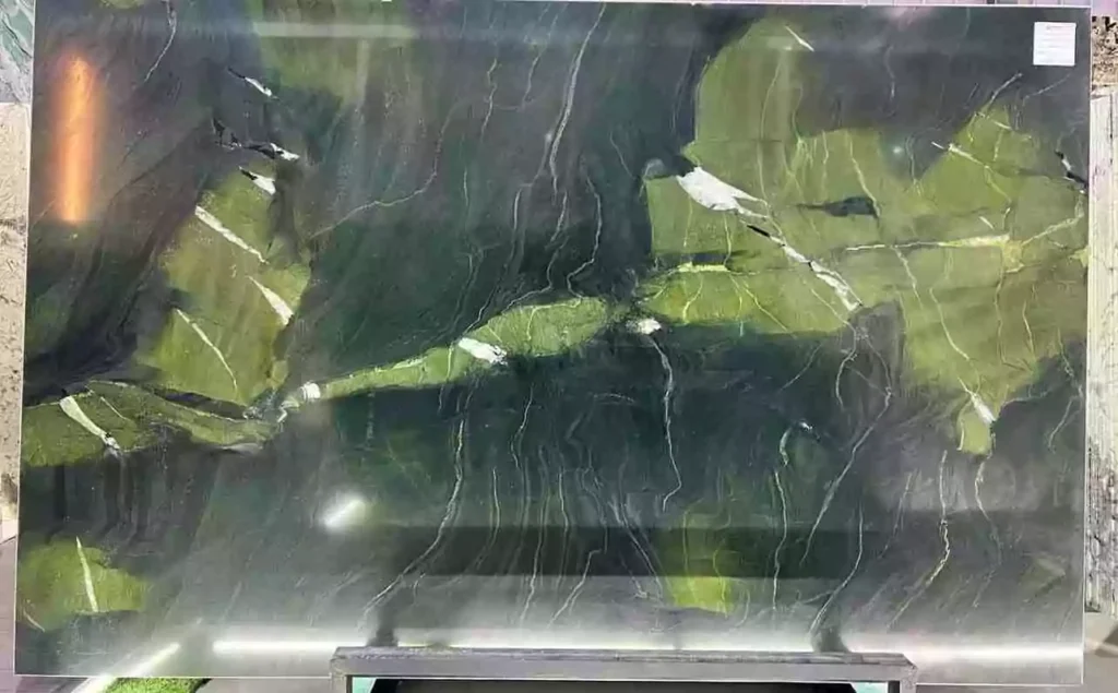 Avocado Quartzite, originating from quarries in Brazil, is a striking natural stone known for its vibrant green hues reminiscent of the avocado fruit. It features a captivating mix of green shades, interspersed with delicate veins of white, grey, and sometimes gold, creating a dynamic and elegant appearance. The polished finish enhances its rich colors and smooth texture, making it a luxurious choice for various interior applications. Ideal for countertops, flooring, and wall cladding, Avocado Quartzite infuses spaces with a touch of natural beauty and sophistication.
